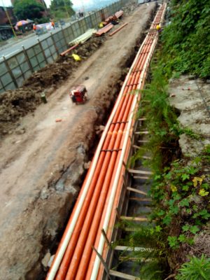 項(xiàng)目介紹:本項(xiàng)目為市重點(diǎn)工程,公招項(xiàng)目。時(shí)間緊(合同開(kāi)工時(shí)間為2016年7月28日,合同竣工時(shí)間為2016年9月15日),任務(wù)重(需新建電纜通道K18約403米,K12約37米,K6約1294米,電力井54座,敷設(shè)電纜約4966米),施工難度大(全線(xiàn)為鬧市區(qū),新建電纜通道需開(kāi)挖公路及人行道,地下管網(wǎng)復(fù)雜,協(xié)調(diào)難度大)。需要通宵達(dá)旦,夜以繼日的趕工。受到了建設(shè)單位:“重慶市國(guó)際化中央商務(wù)區(qū)彈子石示范區(qū)開(kāi)發(fā)建設(shè)管理委員會(huì)”的高度評(píng)價(jià)和肯定,獲得了良好的社會(huì)效益。