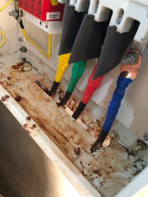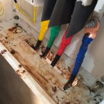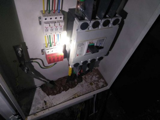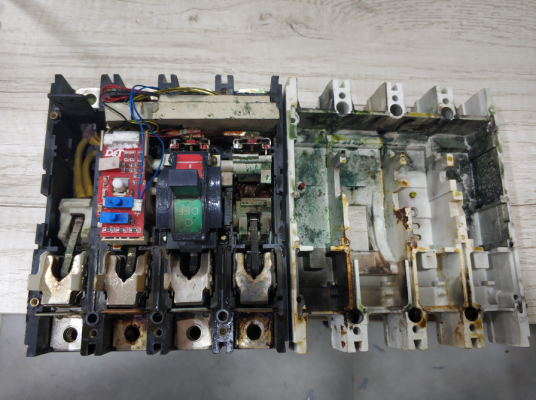 故障原因:因開發(fā)商未及時(shí)處理地面水漬,高溫天氣產(chǎn)生水蒸氣,水蒸氣至樓層頂部時(shí)產(chǎn)生凝露,水滴落至開關(guān)內(nèi)部造成相對地,和相間短路造成開關(guān)損壞。再次,頻繁跳閘原因是,因水漬進(jìn)入開關(guān)內(nèi)部,開關(guān)保護(hù)回路電路板損壞,導(dǎo)致漏電保護(hù)功能動(dòng)作,頻繁跳閘。