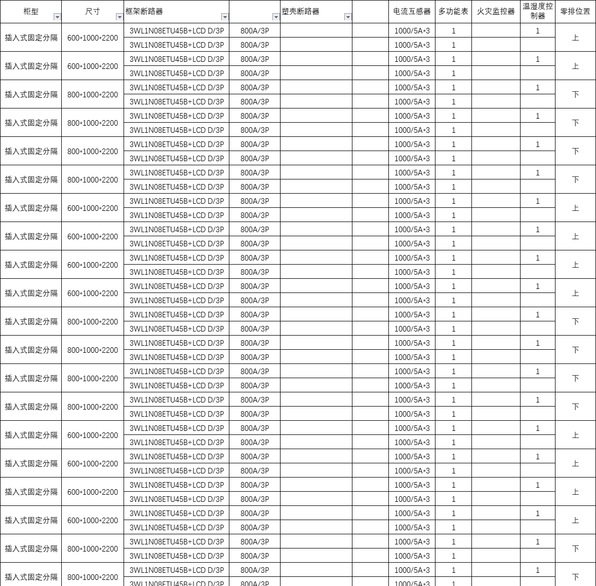插入式固定分隔低壓出線柜-塑殼斷路器