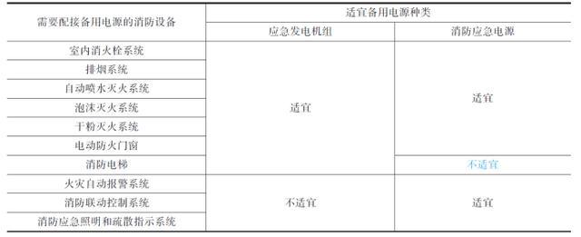 消防用電設備與適宜備用電源種類見下表。