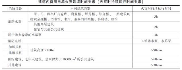 (2)應滿足下表火災時消防設備持續(xù)運行時間的要求