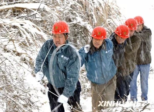 2008年1月28日,國網安徽省電力有限公司宣城供電公司水東供電所員工冒著大雪搶修線路。 李曉紅攝(新華社發(fā))