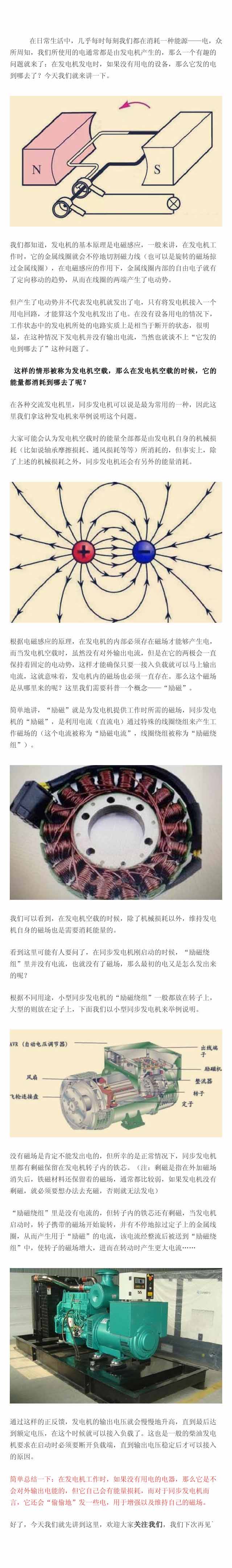 【在發(fā)電機(jī)發(fā)電時(shí),如果沒(méi)有用電的設(shè)備,那么它發(fā)的電到哪去了?】在日常生活中,幾乎每時(shí)每刻我們都在消耗一種能源——電,眾所周知,我們所使用的電通常都是由發(fā)電機(jī)產(chǎn)生的,那么一個(gè)有趣的問(wèn)題就來(lái)了:在發(fā)電機(jī)發(fā)電時(shí),如果沒(méi)有用電的設(shè)備,那么它發(fā)的電到哪去了?戳圖看