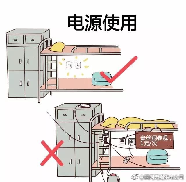 【宿舍床鋪成了“盤絲洞”,后果會(huì)……】違章亂拉亂接電線,把宿舍床鋪周圍布置成“盤絲洞”,這樣容易損傷線路絕緣層,引起線路短路和觸電事故。
