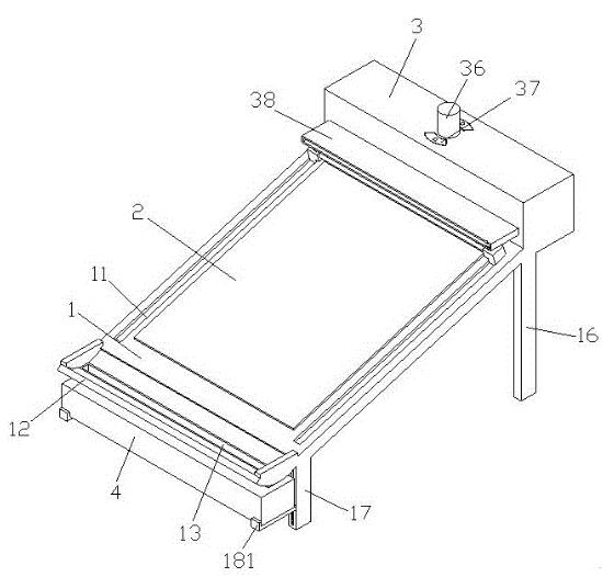 所述連接臂一端設(shè)有安裝塊,所述安裝塊上設(shè)有第三連接槽,所述收集箱側(cè)壁上設(shè)有與所述第三連接槽相配合的第一連接塊,所述第一連接塊上設(shè)有支撐板,所述第三連接槽內(nèi)設(shè)有與所述支撐板相配合的第二支撐塊,所述第三連接槽內(nèi)壁上設(shè)有第三滑塊,所述第一連接塊側(cè)壁上設(shè)有與所述第三滑塊相配合的第一滑槽;所述第三連接槽內(nèi)壁上還設(shè)有第四活動槽,所述第四活動槽內(nèi)設(shè)有與所述支撐板相配合的限位板;在對收集箱做安裝時,將第一連接塊放入到第三連接槽內(nèi),支撐板置于第二支撐塊上,第二支撐塊為支撐板提供支撐力,將第一連接塊安裝于指定第三連接槽的指定位置上,第一滑槽與第三滑塊相配合,避免第一連接塊在水平方向上從第三連接槽內(nèi)移出,使收集箱可正常隨連接臂進(jìn)行轉(zhuǎn)動;第一連接塊裝入到第三連接槽內(nèi)后,將限位板從第四活動槽內(nèi)推出,限位板進(jìn)入到第三活動槽內(nèi),限位板置于第一安裝板頂部,在限位板作用下對第一連接塊起固定作用,將第一連接塊固定在第三連接槽內(nèi),保證收集箱與連接臂連接的可靠性。