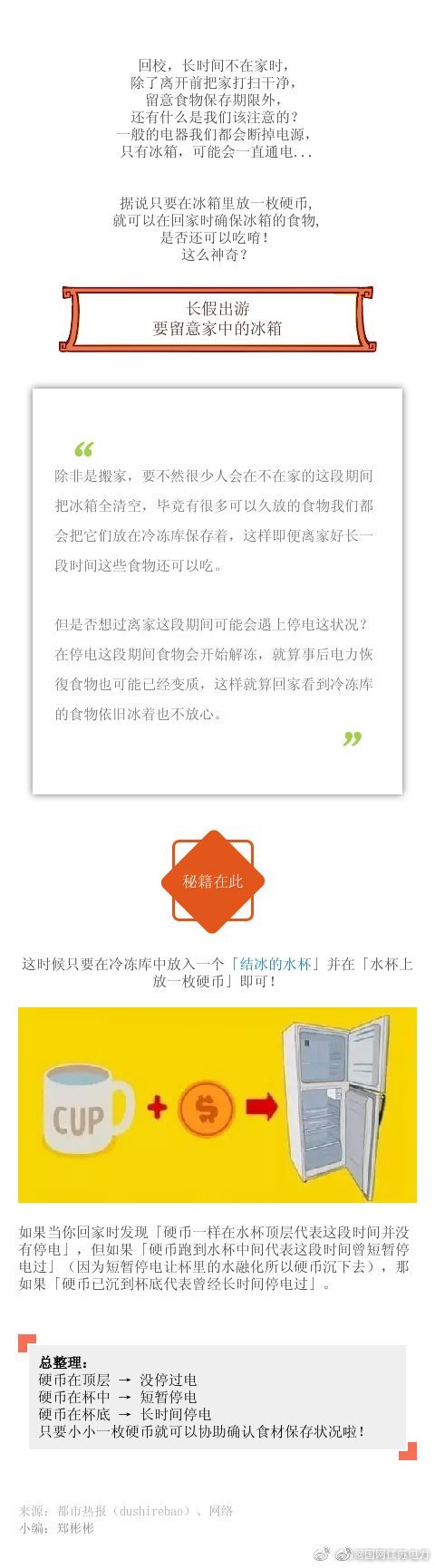 返校常駐,家里沒人,冰箱上記得要放一個硬幣!這是要干嘛?辟邪?導(dǎo)電?NO!NO!NO!這時候只要在冷凍庫中放入一個「結(jié)冰的水杯」并在「水杯上放一枚硬幣」即可!這樣做起到了什么作用呢?