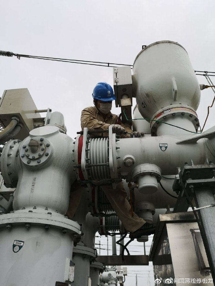 6月5日,在500千伏吳江變電站現(xiàn)場(chǎng),國(guó)網(wǎng)江蘇檢修公司蘇州運(yùn)維站變電修試二班班員正在開展220千伏GIS罐體連接發(fā)熱隱患消除工作。一絲不茍地處理發(fā)熱點(diǎn),確保設(shè)備恢復(fù)正常。