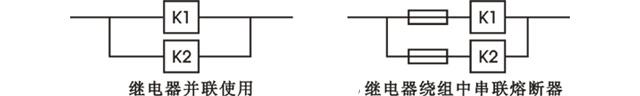 在一些重要的控制及聯(lián)鎖電路中,可增加相同繼電器,即選用兩只同規(guī)格、同參數(shù)的電壓繼電器并聯(lián)使用,除繞組并聯(lián)外,電觸點(diǎn)也可以并聯(lián)使用,這樣可靠性將大大提高。