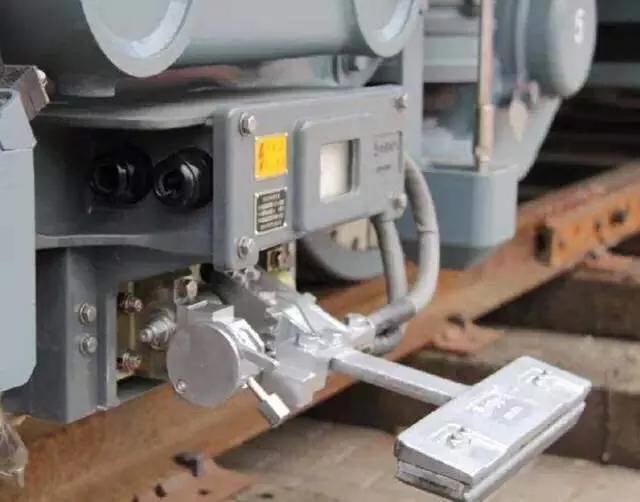 當列車行駛時,地鐵受流器會上下夾住第三軌進行受電。下圖為地鐵受流器