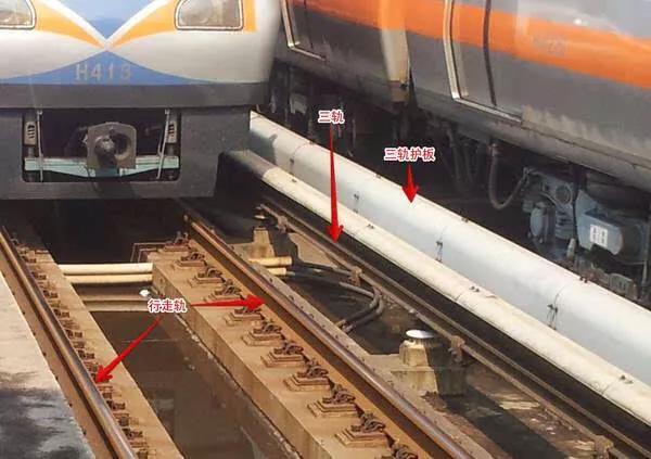 第三軌受電是位于鐵軌旁邊的第三條軌道,輸電方式從上方改為下方,如下圖所示