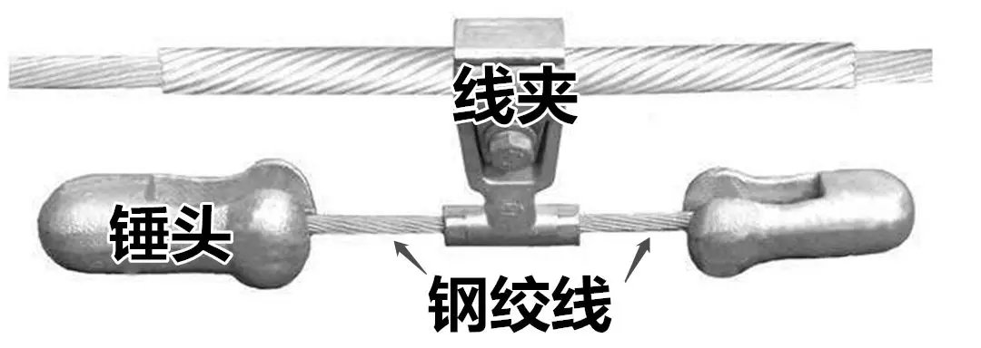 防振錘由線(xiàn)夾、鋼絞線(xiàn)和錘頭三部分組成,通過(guò)線(xiàn)夾固定在電線(xiàn)上。輸電線(xiàn)路發(fā)生微風(fēng)振動(dòng)時(shí)產(chǎn)生的力,會(huì)使防振錘隨之振動(dòng)。