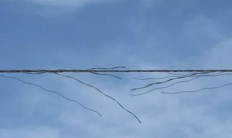 美國(guó)南加州一條220千伏線(xiàn)路,導(dǎo)線(xiàn)采用鋼芯鋁絞線(xiàn),地線(xiàn)采用鋼絞線(xiàn),在運(yùn)行中導(dǎo)線(xiàn)和地線(xiàn)都發(fā)生多處斷股,其中一處54股鋁線(xiàn)斷了28股。