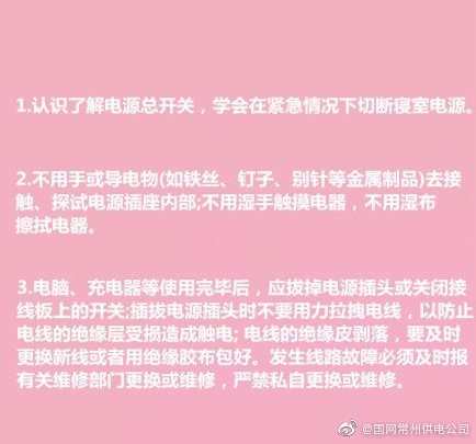 【家長學(xué)生注意了!在校要這樣規(guī)范用電,不然很危險!】學(xué)校安全工作是全社會安全工作的一個十分重要的組成部分。它直接關(guān)系到青少年學(xué)生能否安全、建康地成長,關(guān)系到千千萬萬個家庭的幸福安寧和社會穩(wěn)定。尤其是校園安全用電小知識更需要大家的關(guān)注??齑翀D片進(jìn)行了解吧!
