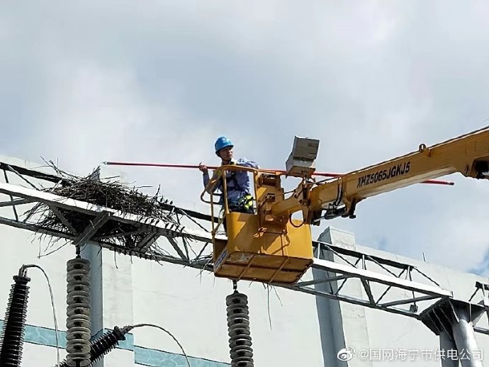 9月18日,國網(wǎng)海寧市供電公司運維人員利用升降車和絕緣操作桿配合作業(yè),半小時內(nèi)拆除贊山邊門架二號主變上兩處“巨型”鳥窩,消除安全隱患,確保變電站安全運行。 ????