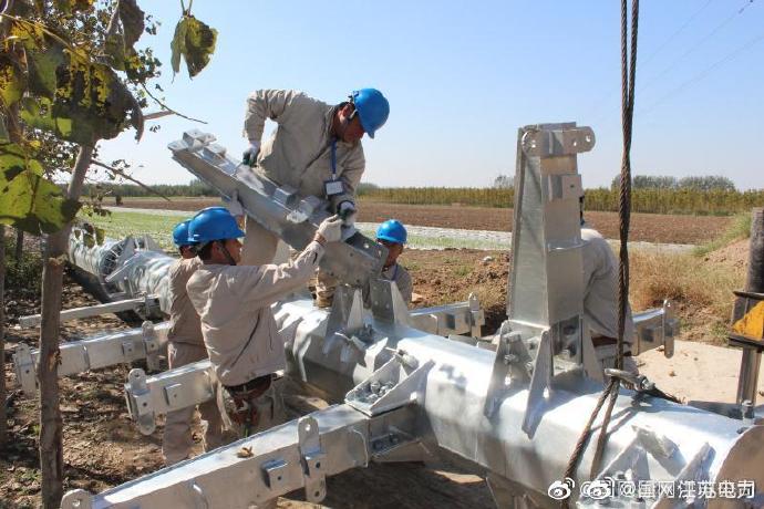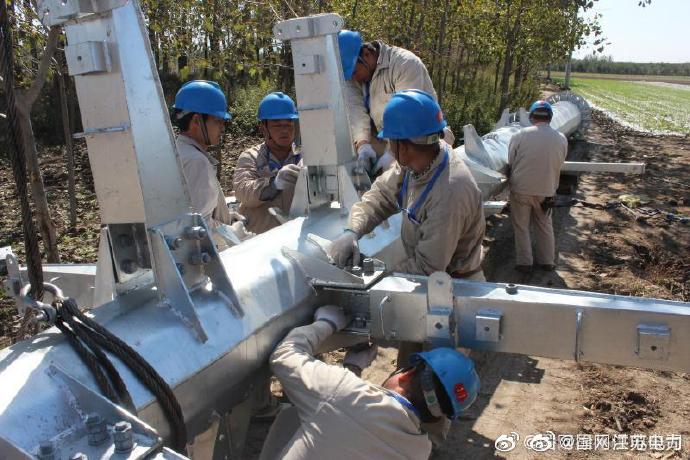 【建設(shè)新電網(wǎng)為鄉(xiāng)村振興提供堅強電力】10月15日,在江蘇省邳州市四戶鎮(zhèn)杜家村110千伏汶河變電站10千伏配套工程上,國網(wǎng)江蘇省邳州市供電公司工程二班工作人員正緊張組立16米高的鋼管塔,建設(shè)堅強配電網(wǎng),加快推進鄉(xiāng)村經(jīng)濟振興。 ????