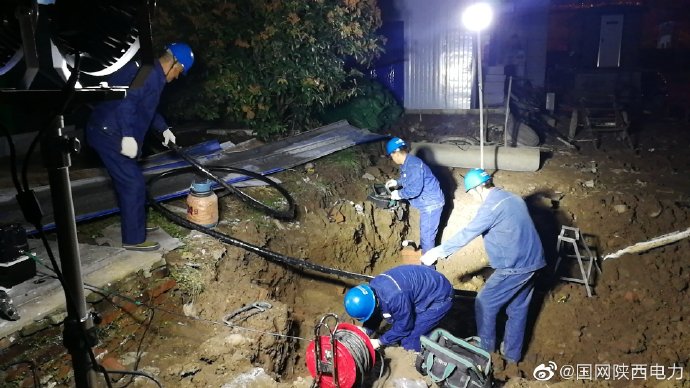 10月27日晚,在漢中中學內(nèi)部教職工宿舍樓基建施工現(xiàn)場,應施工不當造成校內(nèi)630KVA箱變電纜被施工機械挖斷。國網(wǎng)漢中供電公司接到故障報修后迅速組織搶修人員和物資,并派出保電車輛為校內(nèi)提供安全用電保障,電力小哥們?nèi)ν度霌屝薰ぷ?。?jīng)過三個小時的緊張搶修圓滿完成了復電任務,保證了該校師生周一的正常教學用電無恙。