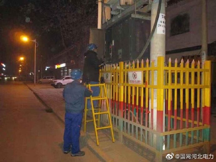 鹿泉區(qū)供電公司冒著寒風對變壓器逐臺進行測溫