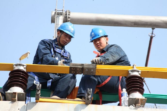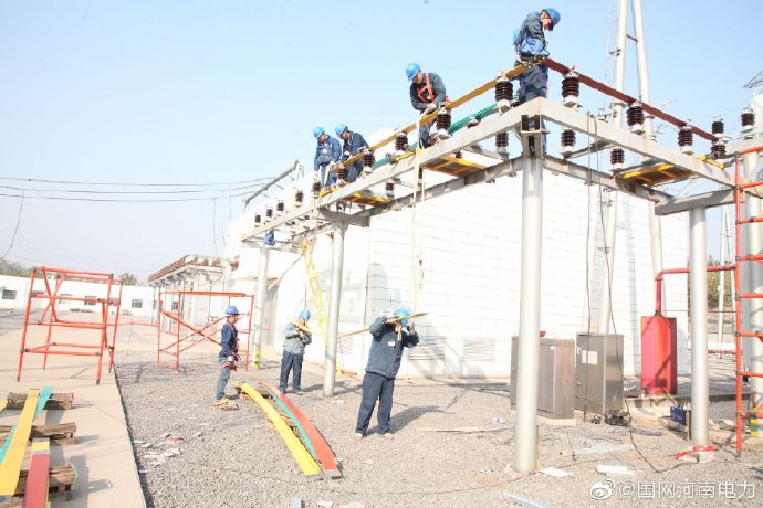 11月25日,在220千伏軹都變電站檢修現(xiàn)場(chǎng),國(guó)網(wǎng)濟(jì)源供電公司工作人員正在安裝10千伏母線橋。