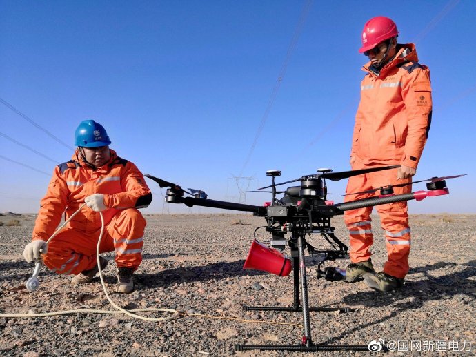 12月5日,國網(wǎng)新疆電力第一次在“疆電外送”通道保障750千伏輸電線路上實戰(zhàn)演練,首次使用無人機拋繩技術,提高了應急反應速度和效率。此次應急演練共有80余人參與,出動各種車輛9輛,用時約4小時。通過演練,提高當?shù)仉娏Σ块T應急保障能力,進一步確保“疆電外送”通道安全可靠運行。
