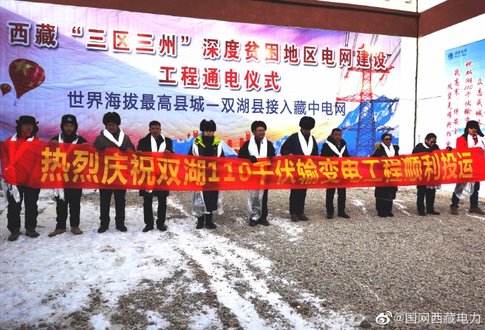 2月24日10時20分,海拔5000米的雙湖縣110千伏輸變電工程投運現(xiàn)場一片歡歌笑語,隨著電力員工合上最后一個開關(guān),標志著世界海拔最高的縣納入了國家電網(wǎng)主網(wǎng)覆蓋范圍,有力解決了該縣7300余名高海拔地區(qū)農(nóng)牧民群眾用電難的問題。長期以來,雙湖縣一直處于電力孤網(wǎng)運行,僅依靠光伏供電,供電可靠性差,電能質(zhì)量不高,為了讓更多的農(nóng)牧民群眾用上大電網(wǎng)的電,提高當?shù)剞r(nóng)牧民群眾的生產(chǎn)生活用電水平,國網(wǎng)西藏電力實施雙湖縣“三區(qū)三州”深度貧困地區(qū)電網(wǎng)建設(shè)工程,總投資約6億元,新建110千伏輸變電工程2項,線路長度270公里,主變?nèi)萘?萬千伏安;35千伏輸變電工程2項,線路長度123公里,主變?nèi)萘?000千伏安;10千伏中低壓工程涉及到4個鄉(xiāng)鎮(zhèn),新建10千伏及以下線路236公里,新增臺變21臺,新增配變?nèi)萘?000千伏安,新建戶表1896戶。