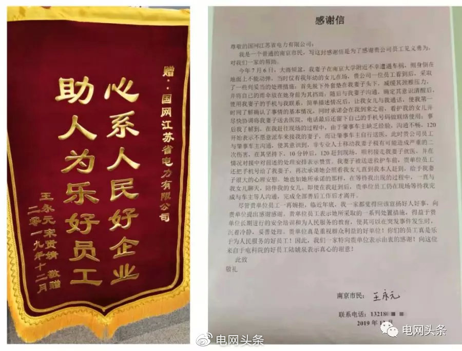12月17日,電力姑娘陸婋泉還是被“曝光”了。當(dāng)天,一面錦旗和一封感謝信送到了單位,她瞞了半年的秘密終于在年底被大家知道了。