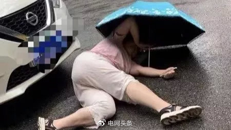 這時,一位年輕的姑娘從人群中擠了進(jìn)來。她將雨傘放在女子身前為其擋雨,脫下自己的外套墊在女子頭下,減緩頸椎壓力。
