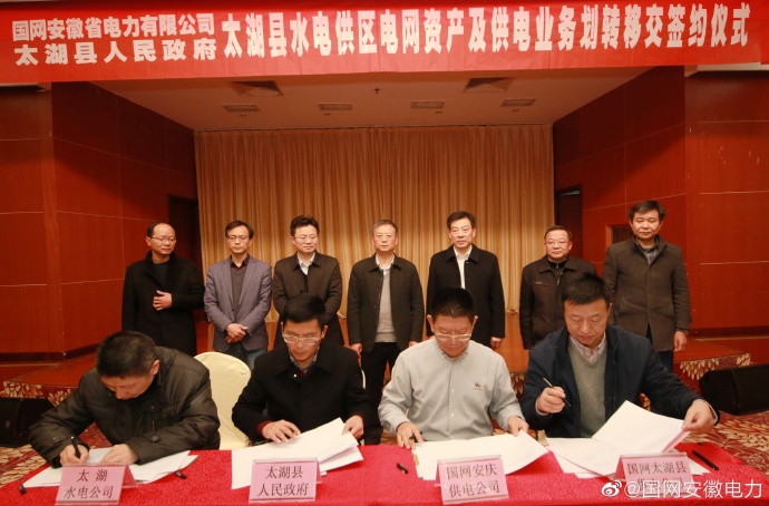 安徽電力公司與太湖縣政府就全縣水電供區(qū)電網(wǎng)資產(chǎn)及供電業(yè)務(wù)劃轉(zhuǎn)移交舉行簽約儀式