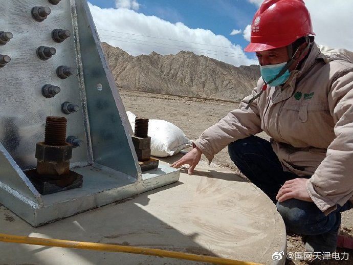 3月20日,天津送變電員工李志強(qiáng)在西藏日喀則市定日縣發(fā)生5.9級(jí)地震后,檢查阿里與藏中電網(wǎng)聯(lián)網(wǎng)工程500kV線路工程第五標(biāo)段已組立完成的鐵塔基礎(chǔ)。 ????