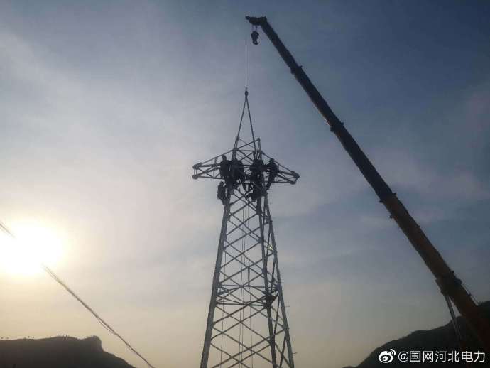 夕陽(yáng)西下金燦燦,供電員工組鐵塔。3月22日,國(guó)網(wǎng)磁縣供電公司員工對(duì)10千伏爐峰山線路進(jìn)行升級(jí)改造,以滿足西部山區(qū)經(jīng)濟(jì)快速發(fā)展的用電需求。圖為該公司員工在10千伏爐峰山031線路組立鐵塔