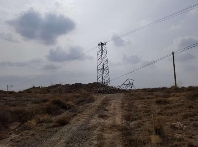 大風(fēng)吹倒自有電塔 供電公司緊急搶修