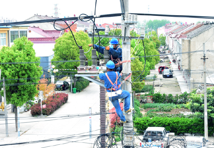 【調(diào)整電網(wǎng)結(jié)構(gòu)??優(yōu)化供電質(zhì)量】 4月16日,盱眙縣馬壩供電所員工許俊奎、雍友林在10千伏164線(xiàn)馬壩街道支線(xiàn)37號(hào)桿拆卸斷路器,更換為智能型斷路器,科學(xué)管控線(xiàn)路用電負(fù)荷承載率,適時(shí)監(jiān)控線(xiàn)路泄露電流,遇到突發(fā)性故障能夠迅速斷電,確保人員、設(shè)備不受傷害。