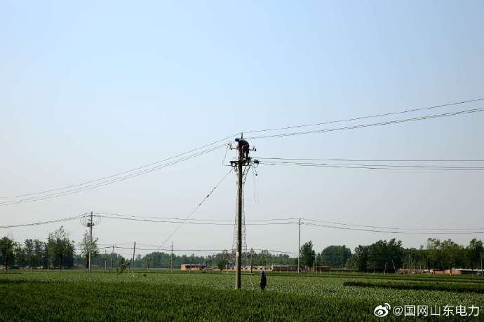 【農(nóng)網(wǎng)改造換新顏 居民度夏好用電】5月7日,烈日高懸,小麥過膝,國網(wǎng)陽谷縣供電公司工作人員對(duì)10千伏魯坊線進(jìn)行全面改造升級(jí),40名員工協(xié)調(diào)配合,共立桿12基,更換絕緣導(dǎo)線1400米,桿上橫擔(dān)全部換新,確保迎峰度夏期間居民生產(chǎn)生活可靠用電。 ????
