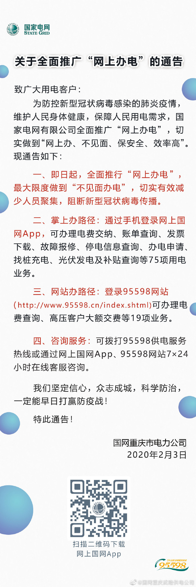 關(guān)于全面推廣“網(wǎng)上辦電”的通告