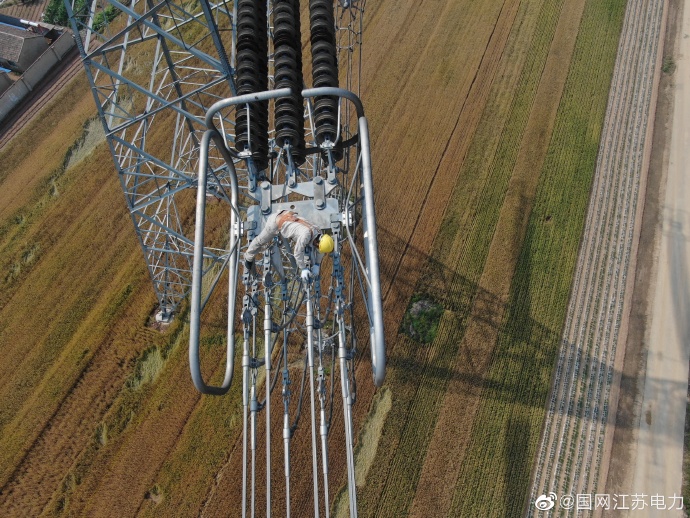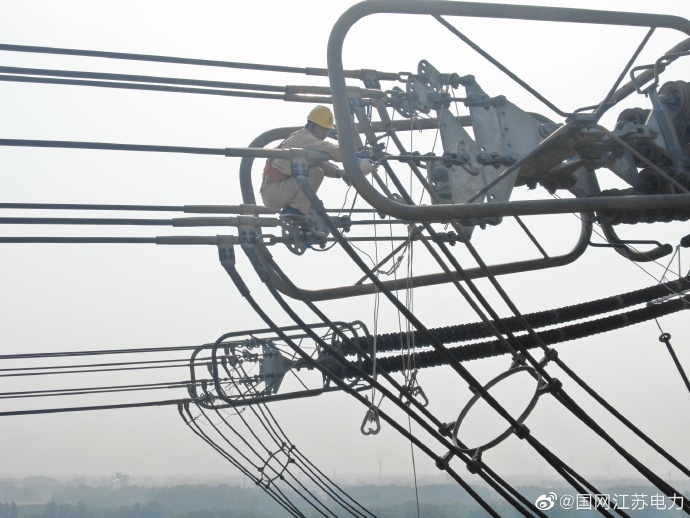 5月26日,為期11天的±800千伏錫泰線年度綜合檢修正式結(jié)束,江蘇省送變電有限公司特高壓運(yùn)檢分公司檢修人員正將線路上接地線拆除。本次檢修一共消除線路本體缺陷321處,更換零值及破損瓷瓶18片。±800千伏錫泰直流未來將以一個更加良好的狀態(tài)為江蘇大地輸送能源。