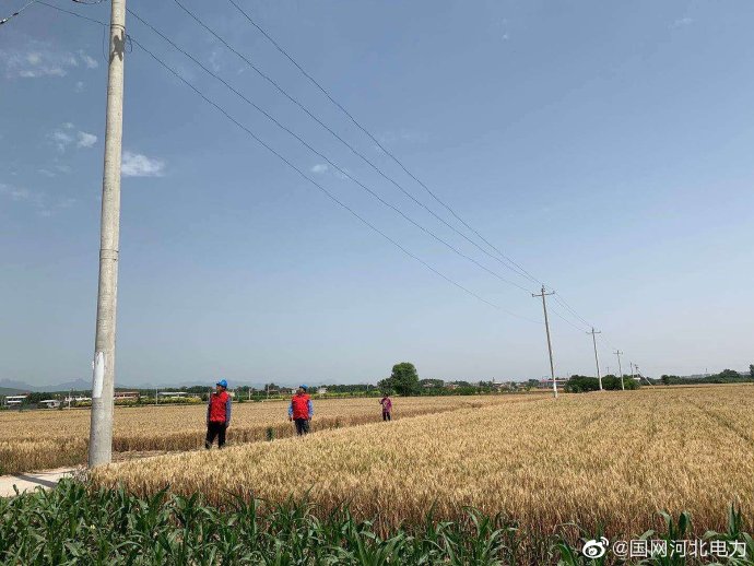 線路巡視,服務(wù)“三夏”。6月7日,國網(wǎng)贊皇縣供電公司員工深入田間進(jìn)行線路巡視,給麥田里的電桿拉線加裝安全警示標(biāo)志,確?!叭摹鞭r(nóng)忙時(shí)節(jié)轄區(qū)電網(wǎng)設(shè)備安全運(yùn)行,保障“三夏”期間群眾安全可靠用電。