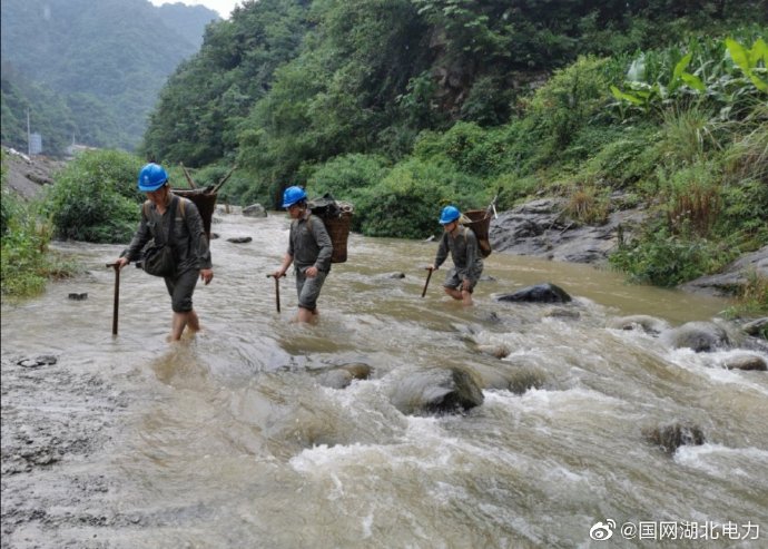 6月9日,國網(wǎng)湖北檢修公司宜昌分部員工前往500kV盤宜二回397號桿塔更換絕緣子的途中突遇大雨,夾雜著汗水和雨水的工作服很快濕透,作業(yè)人員背負40多斤的作業(yè)工器具繼續(xù)跋山涉水,隨后在40米高的鐵塔上完成了操作任務(wù)。