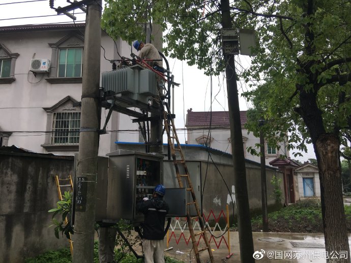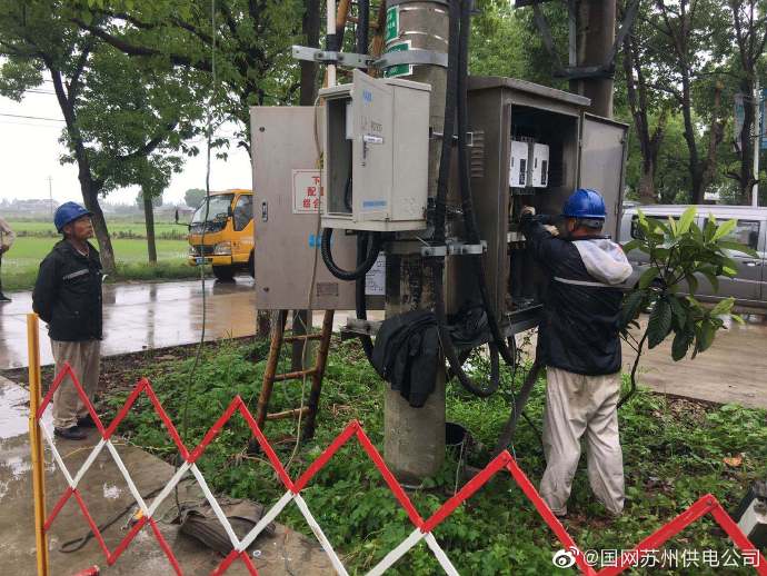 6月10日,國網(wǎng)蘇州供電公司工作人員冒雨對(duì)下絲配變開關(guān)維修和TTU安裝作業(yè),有效提高供電可靠率,確保配變安全穩(wěn)定運(yùn)行,為營銷精益化管理、精確線損管理提供可靠依據(jù)。