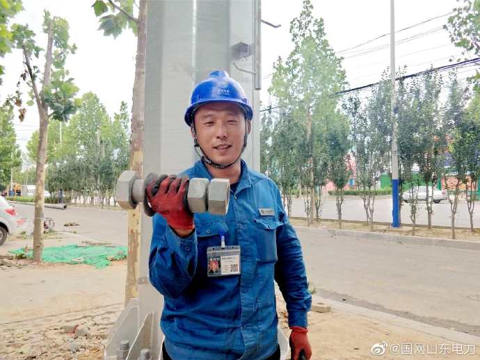 6月15日傍晚6時余,國網(wǎng)陽谷縣供電公司8名員工仍在10千伏谷山線改造現(xiàn)場緊張施工,他們按位置蹲好,用大號扳手緊固拳頭大小的螺絲帽。看到小編沒見過世面的樣子,熱情的王師傅詳細演示了一遍螺絲緊固過程,開玩笑道:小哥,啞鈴大的螺絲見過沒? ????