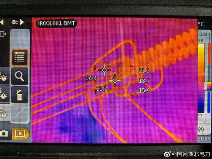 拍一張照,導(dǎo)線燒不燒全知道。6月18日,國(guó)網(wǎng)湖北檢修公司鄂西北運(yùn)維分部職工對(duì)500千伏斗樊二回線開(kāi)展耐張接點(diǎn)紅外測(cè)溫工作。打開(kāi)紅外測(cè)溫儀,輕輕一點(diǎn),導(dǎo)線溫度、接點(diǎn)溫度全記錄,及時(shí)發(fā)現(xiàn)發(fā)熱缺陷并處理,讓設(shè)備以最優(yōu)的狀態(tài)迎峰度夏。