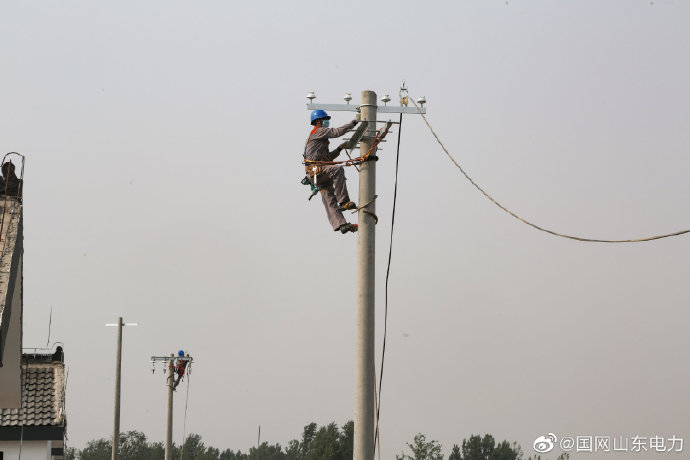 6月21日,在鄄城縣黃河灘區(qū)居民遷建七街村臺(tái),國網(wǎng)鄄城縣供電公司工作人員對(duì)該村臺(tái)的0.4千伏低壓線路進(jìn)行架設(shè)施工。工作人員克服悶熱天氣等不利因素,全面加快村臺(tái)配電網(wǎng)施工,確保按期完成配電網(wǎng)建設(shè)任務(wù),保障灘區(qū)居民早日搬進(jìn)新家。 ????
