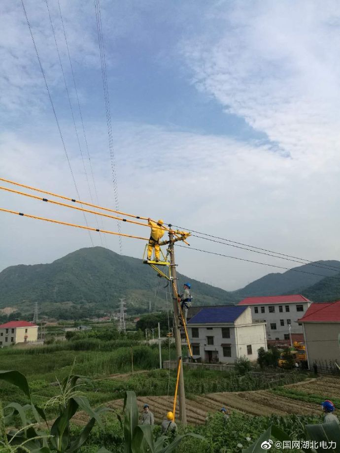 6月27日,為配合新建輸電線路導(dǎo)地線展放施工,國網(wǎng)黃石高新區(qū)供電中心帶電班“小黃人”在桿上為輸電線路下方運行中的10kV藍天線大垴山支線“添衣”,進行絕緣遮蔽,避免施工期間誤碰帶電線路,全力保障用戶安全可靠供電。