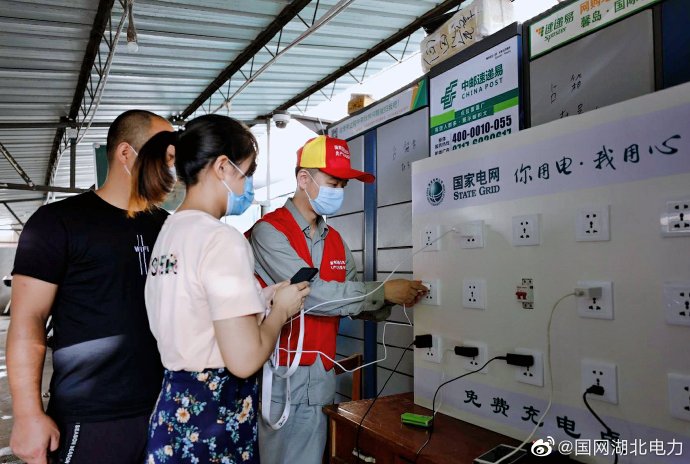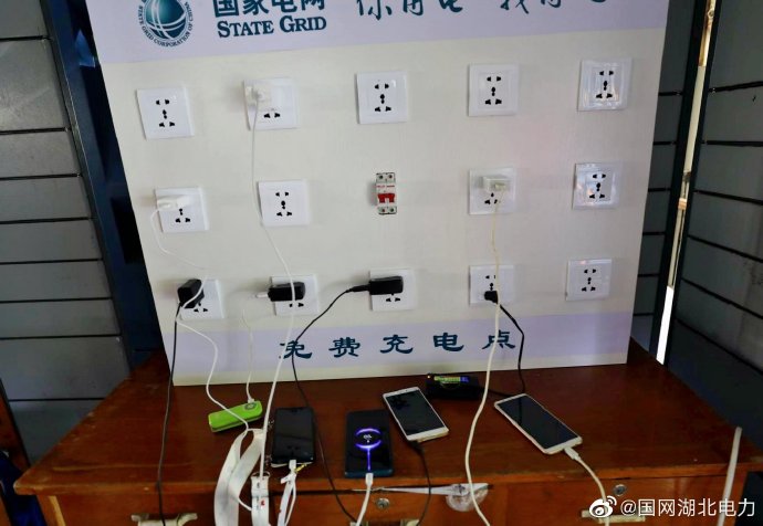 6月29日,國(guó)網(wǎng)宜昌供電公司客服中心黨員服務(wù)隊(duì)將特制的手機(jī)充電板裝設(shè)到馨島國(guó)際名苑小區(qū),供居民免費(fèi)為手機(jī)充電。由于特大暴雨,馨島國(guó)際名苑小區(qū)安裝在停車庫(kù)的配電室、計(jì)費(fèi)表全部被淹沒(méi),短期內(nèi)積水難以排空,供電搶修難度大。國(guó)網(wǎng)宜昌供電公司在全力搶修的同時(shí),增設(shè)發(fā)電機(jī)和定制充電板,為小區(qū)居民的手機(jī)續(xù)航,盡力減少客戶因停電造成的不便。