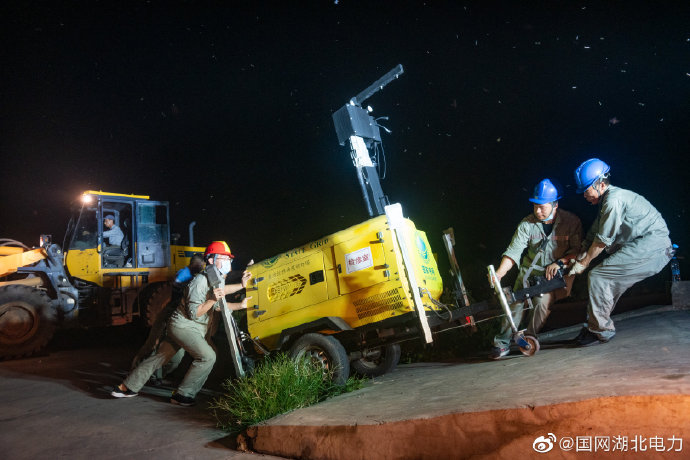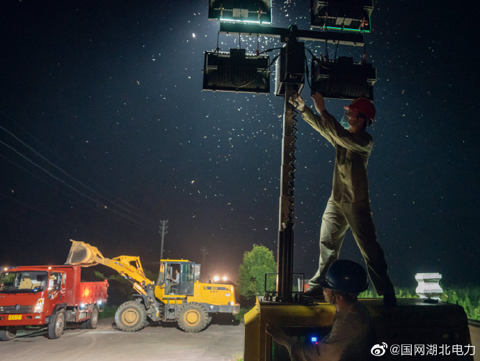 “一、二、三,嘿呀……”7月10日凌晨,武漢漢南區(qū)供電公司的工作人員喊著號子,奮力將移動照明燈塔推到路邊高臺之上,為銀蓮湖堤段通津河堤搶險加固兩個砂石裝載點提供現(xiàn)場照明,引來蚊蟲大軍的“密集轟炸”,大的飛蟲鉆進袖口、衣領(lǐng),小的蚊蟲飛進鼻孔、嘴巴,有同事戲稱:大家收到了蚊蟲贈送的“大紅包”。