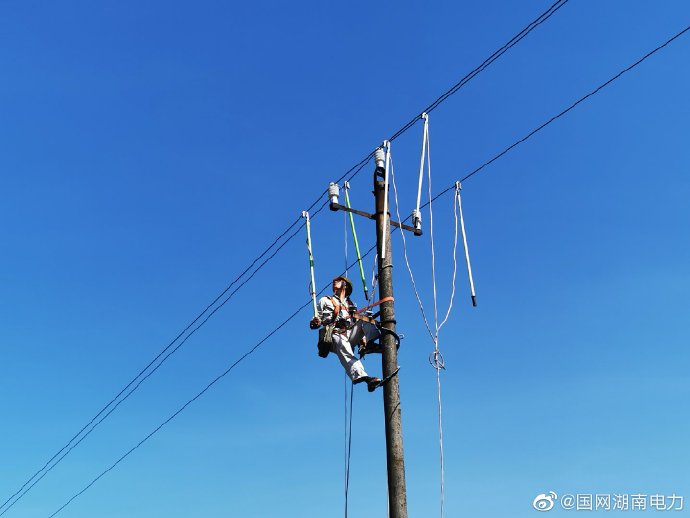 湛藍的天空,碧綠的稻田,在藍天和稻田之間,電桿上揮汗如雨的電力蜀黍便是最美的風景。7月13日上午,國網(wǎng)耒陽市供電公司哲橋供電所的配電運行員李康橋、譚小紅正在處理10千伏南集線#122桿C相導線故障。