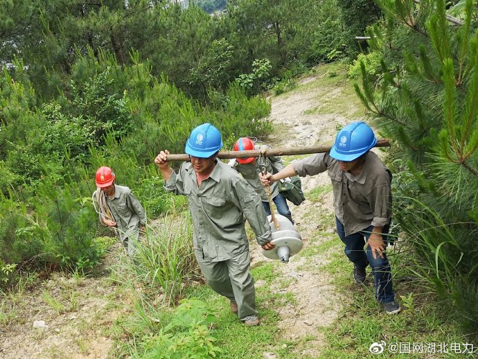【翻山越嶺,卻無心看風景】6月3日,國網(wǎng)武穴市供電公司員工對35kV余荊線28#塔被雷擊損壞的瓷瓶及時進行更換。施工地點地處橫崗山森林公園,沿途風景秀美,氣勢恢宏,工作人員無暇欣賞美景,肩挑手扛保障橫崗變電站正常供電。