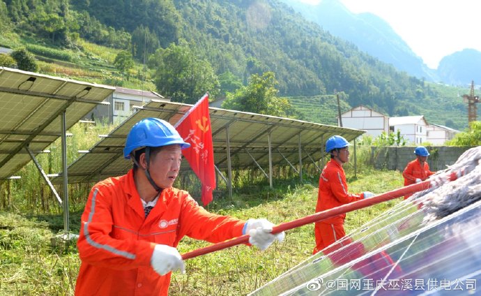 8月10日,重慶巫溪供電公司共產(chǎn)黨員服務(wù)隊隊員向國揚、孟海祥等在紅池壩鎮(zhèn)漁沙村為客戶清潔光伏發(fā)電板,助力該鎮(zhèn)高質(zhì)量打贏脫貧攻堅戰(zhàn)。