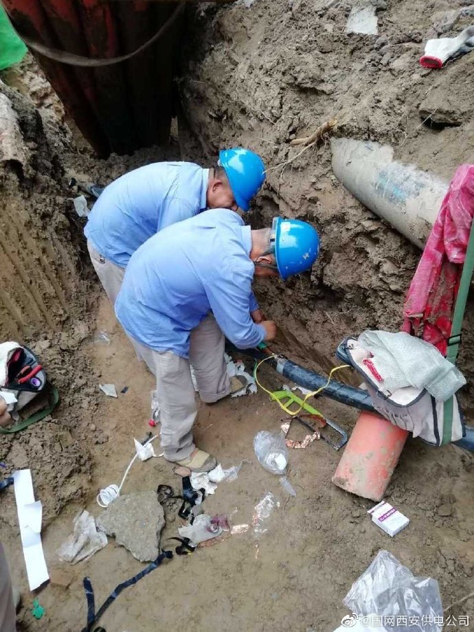 8月15日,國(guó)網(wǎng)西安市鄠邑區(qū)供電公司工程施工人員從轄區(qū)龐光線完成施工任務(wù)返回途中接到搶修任務(wù),將疲憊的身體迅速調(diào)整回好狀態(tài),他們又一次投身故障現(xiàn)場(chǎng)場(chǎng)奮力搶修。因外力破壞電纜導(dǎo)致國(guó)防學(xué)院停電,施工人員經(jīng)過現(xiàn)場(chǎng)勘察確定故障點(diǎn)后,迅速開挖土方,實(shí)施搶修作業(yè),為了迅速恢復(fù)供電,他們爭(zhēng)分奪秒,盡量縮短停電時(shí)長(zhǎng),于夜晚10:30恢復(fù)供電。