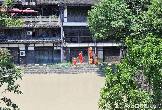 8月14日,重慶嘉陵江2020年第1號(hào)洪水過(guò)境重慶磁器口,當(dāng)天12點(diǎn)30分,洪峰水位達(dá)186.54米,超警戒水位3.9米,比7月26日洪峰水位足足高出了近4米。國(guó)家電網(wǎng)紅巖(市區(qū)沙坪壩)共產(chǎn)黨員服務(wù)隊(duì)冒著39度的高溫守護(hù)在現(xiàn)場(chǎng),對(duì)洪峰沿岸的電力設(shè)施進(jìn)行不間斷巡視檢查,及時(shí)發(fā)現(xiàn)并處理各類安全隱患。洪水過(guò)境期間,重慶電網(wǎng)運(yùn)行平穩(wěn),前往古鎮(zhèn)的游客依舊絡(luò)繹不絕。