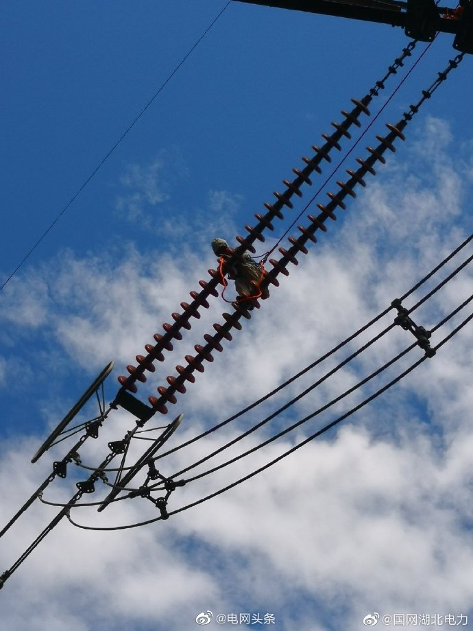 8月18日,碧空烈“焰”,室外溫度已高達37℃。為保障迎峰度夏期間三峽電力外送線路安全高效運行,國網(wǎng)湖北檢修公司宜昌運維分部帶電作業(yè)人員利用軟梯進入等電位,緊急消除了500千伏三江Ⅱ線54號塔中相大號側(cè)導線引流板螺栓異常發(fā)熱缺陷。他們頭頂烈日,穿梭于鐵塔銀線間,只為守護遠方的一份清涼。