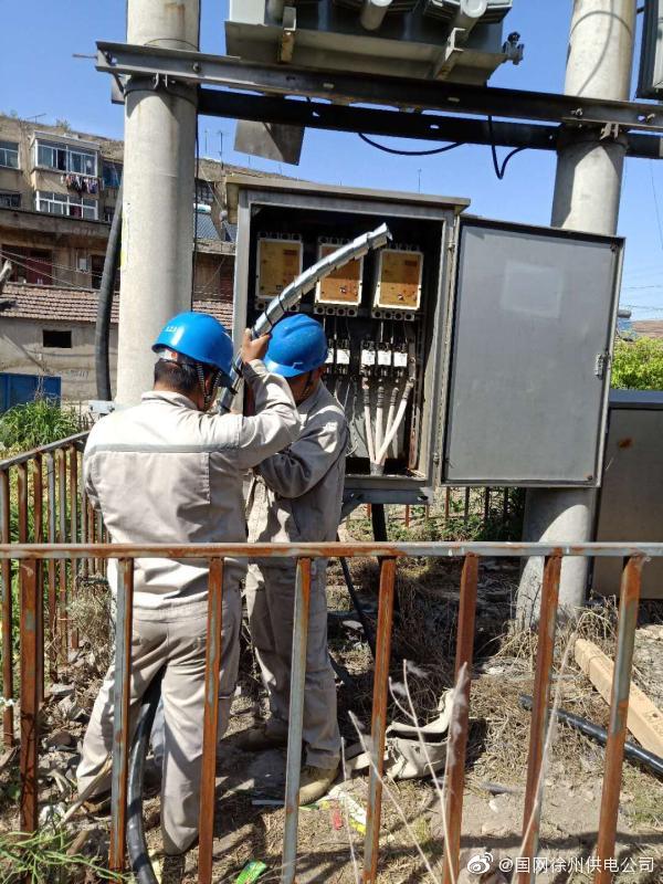 6月3日,國網(wǎng)徐州銅山區(qū)供電公司運維部駐黃集鎮(zhèn)搶修基站人員到黃西小區(qū)1號公變更換配電柜進出線電纜,保障迎峰度夏期間供電安全。